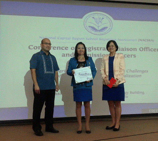 The NCR School Registrars’ Association (NACSRA) held its annual conference with the theme “Addressing the Issues of Higher Education” on February 12, 2016 at the Henry Sy Hall of the De La Salle University Manila. A total of 373 delegates, composed of Registrars, Assistant Registrars, Admission Officers and Liaison Officers, participated in the said event. Institutional membership in NACSRA stands at 179 colleges and universities.